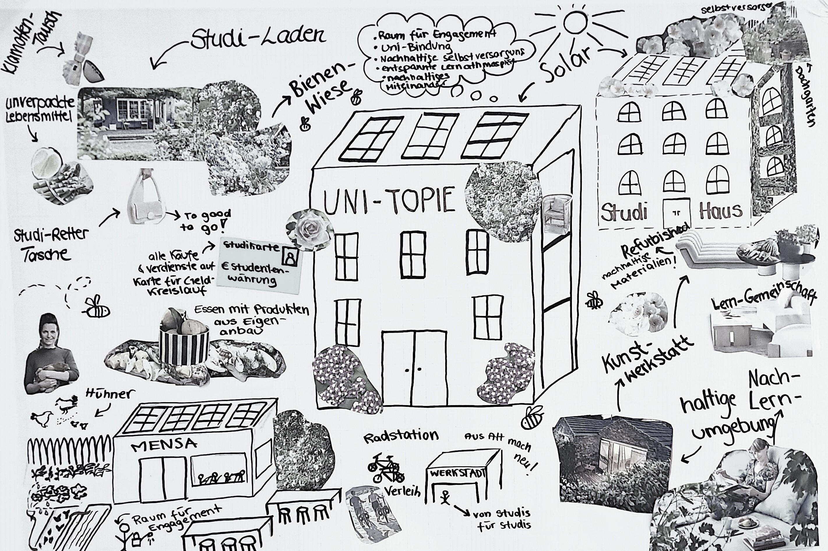 Wie sehen Hochschulen in einer nachhaltigen Zukunft aus? In einer Zukunft, in der planetare Grenzen gewahrt werden? Einer Zukunft, in der ökologisch, sozial und ökonomisch gerecht gehandelt wird? Und welche Verantwortung tragen Hochschulen eigentlich für den gesellschaftlichen Wandel in Richtung Nachhaltigkeit? Mit diesen Fragen hat sich im Sommersemester 2025 eine Seminargruppe des Instituts für Kommunikationswissenschaft an der Universität Münster beschäftigt.